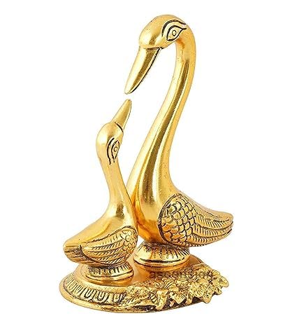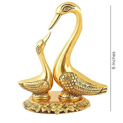Exquisite Design: Depicts a graceful swan couple with intricate carvings and a rich golden finish.